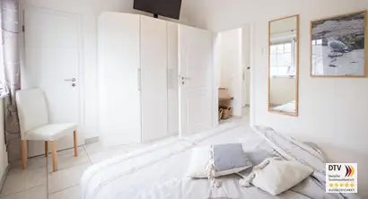 Es erwartet Sie eine exklusive, lichtdurchflutete 3-Zimmer Ferienwohnung mit Kaminofen, nur 150m vom Strand entfernt! Die gesamte Ferienwohnung ist mit Fußbodenheizung ausgestattet und liebevoll eingerichtet. Unsere Nichtraucher-Ferienwohnung befindet sich im Dachgeschoss in der Villa 'Birkenboom' in der Birkenstraße 5 in einer Spielstraße. Somit ist der kurze Weg bis zum Strand auch für Ihre Kinder sicher.